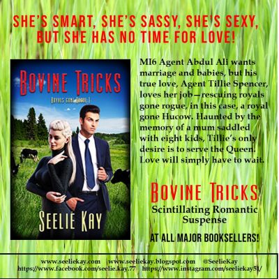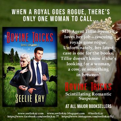 Today, award-winning author Seelie Kay is guesting. She’s talking about her latest release Bovine Tricks, book three in the Royals Gone Rogue series, a romantic suspense. Don’t forget to check out the excerpt.