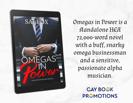 Note: Omegas in Power is the first book in a series, but can be read as a stand-alone. HEA with a buff, snarky omega businessman and a sensitive, passionate alpha musician. Warnings for mentions of off-screen child abuse and grief.