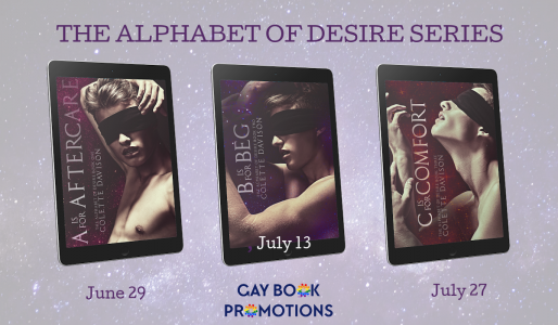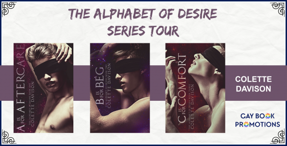 Today, I have author Colette Davison in the interview chair. We’re talking about her latest series release The Alphabet of Desire, a m/m contemporary romance. Don’t forget to enter the Rafflecopter giveaway.