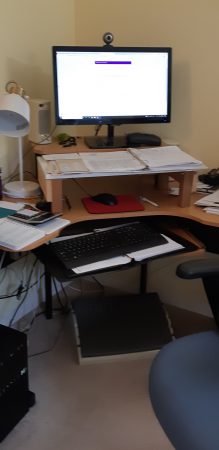 Jana: Since the pandemic began in March 2020, my office has also been my yoga studio. When things closed down, my yoga instructor went online and I’ve been doing two classes a week on Zoom ever since. This little room is just big enough!