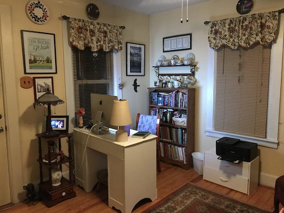 Janina: I love writing in this spot, but I am also comfortable writing at my kitchen table, in the living room, in my office recliner, and while camping. The only place I can’t write is in bed.
