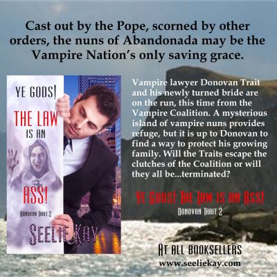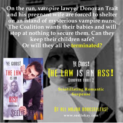Today, I have fellow eXtasy Books author Seelie Kay in the inteview chair.  We’re discussing her latest release Ye Gods! The Law is an Ass!, book two in the Donovan Trait series, a paranormal romantic suspense.  Don’t forget to check out the excerpt.