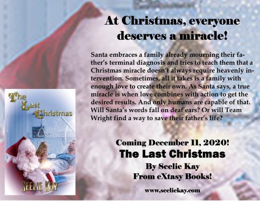 Seelie: In this story, when the doctors say there’s no hope, Santa begs to differ. After all, he claims, miracles are love combined with action to get the desired result. And at Christmas, everyone deserves a miracle! This is a tale of hope and the power of family, with a little sizzling romance mixed in.