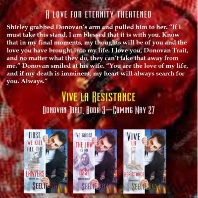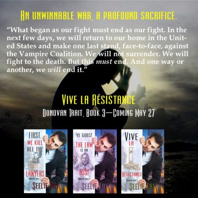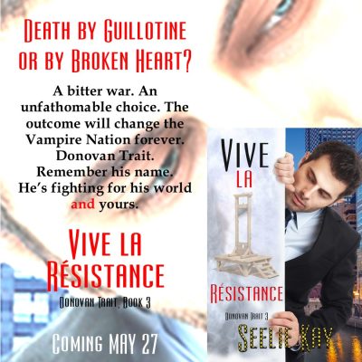 Today, I have award-winning author Seelie Kay in the interview chair. We’re discussing her latest release Vive la Resistance, book three in the Donovan Trait series, a paranormal, romantic suspense.