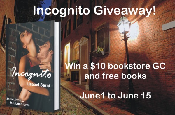 Win a $10 bookstore GC or free books in my INCOGNITO giveaway. The contest runs from June 1 to June 15.