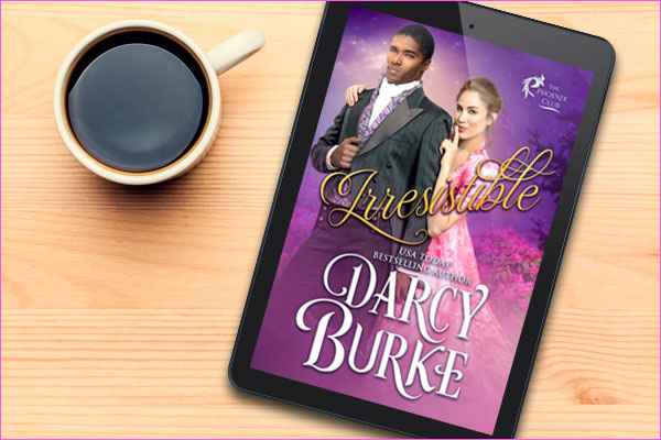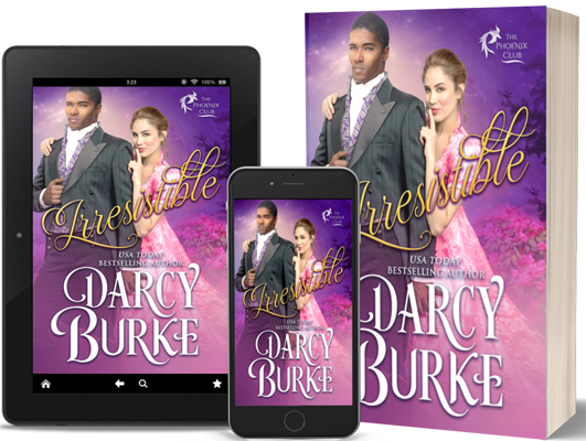 Darcy:  All the books in the Phoenix Club series are single words and start with the letter I. This book is called Irresistible because the hero and heroine must pose as a married couple while trying to determine if another couple are French spies. Though they must keep things professional, they find each other quite irresistible!