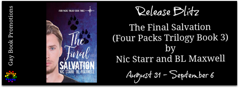 Today, I’m hosting authors Nic Starr and BL Maxwell’s latest release The Final Salvation, book three in the Four Packs Trilogy, a m/m paranormal romance. Be sure to read my review (check out the reviews for books one and two). And don’t forget to enter the Rafflecopter giveaway.
