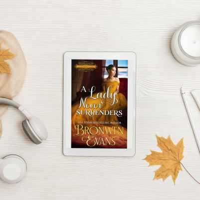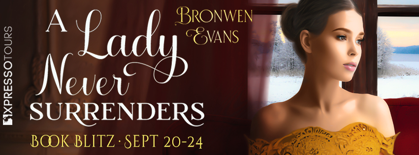 Today, I’m hosting USA Today bestselling author Bronwen Evans’ latest release A Lady Never Surrenders, book one in the Sisterhood of Scandals series, a historical romance. Be sure to read my review coming your way on Friday, October 7, 2022. And don’t forget to enter the Rafflecopter giveaway.
