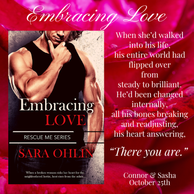 Today, I’m hosting author Sara Ohlin’s latest release Embracing Love, book four in the Rescue Me series, a contemporary romance. Be sure to read my review. And don’t forget to enter the Rafflecopter giveaway.
