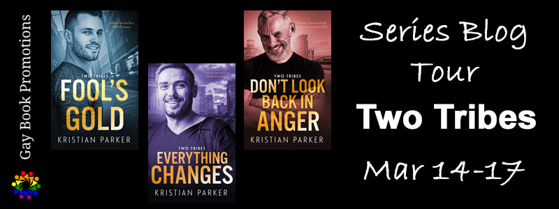 Today, I’m hosting author Kristian Parker’s latest series release Two Tribes, a m/m contemporary romance. Be sure to read my review of book one, Fool’s Gold. Enter the Rafflecopter giveaway. And watch for my upcoming reviews for books two and three.