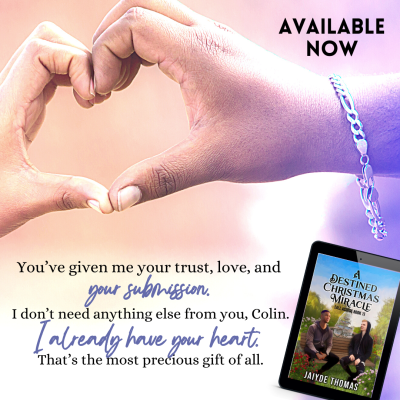 Jaiyde: This is a good question. Colin came from a previous book, Claim Me, Love Me, as Josaiah’s fling. After the way things ended between the two, I knew he needed a story. Colin is sweet, caring, and curious. In A Destined Christmas Miracle, he deals with a traumatic event that changes his life. I loved developing him, and the one thing I loved about him was his growth throughout the story. I also loved his openness as he became comfortable talking about his assault.