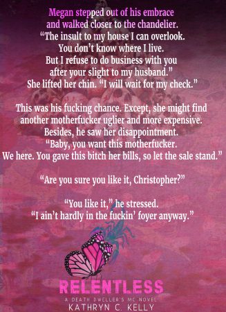 Today, author Kathryn C. Kelly is guesting. She’s talking about her latest release Relentless, book three in the Death Dwellers MC Legacy Generation series, a contemporary romance. Be sure to watch for my reviews of the first three novels in the series coming your way on April 22nd. And don’t forget to enter the Rafflecopter giveaway.
