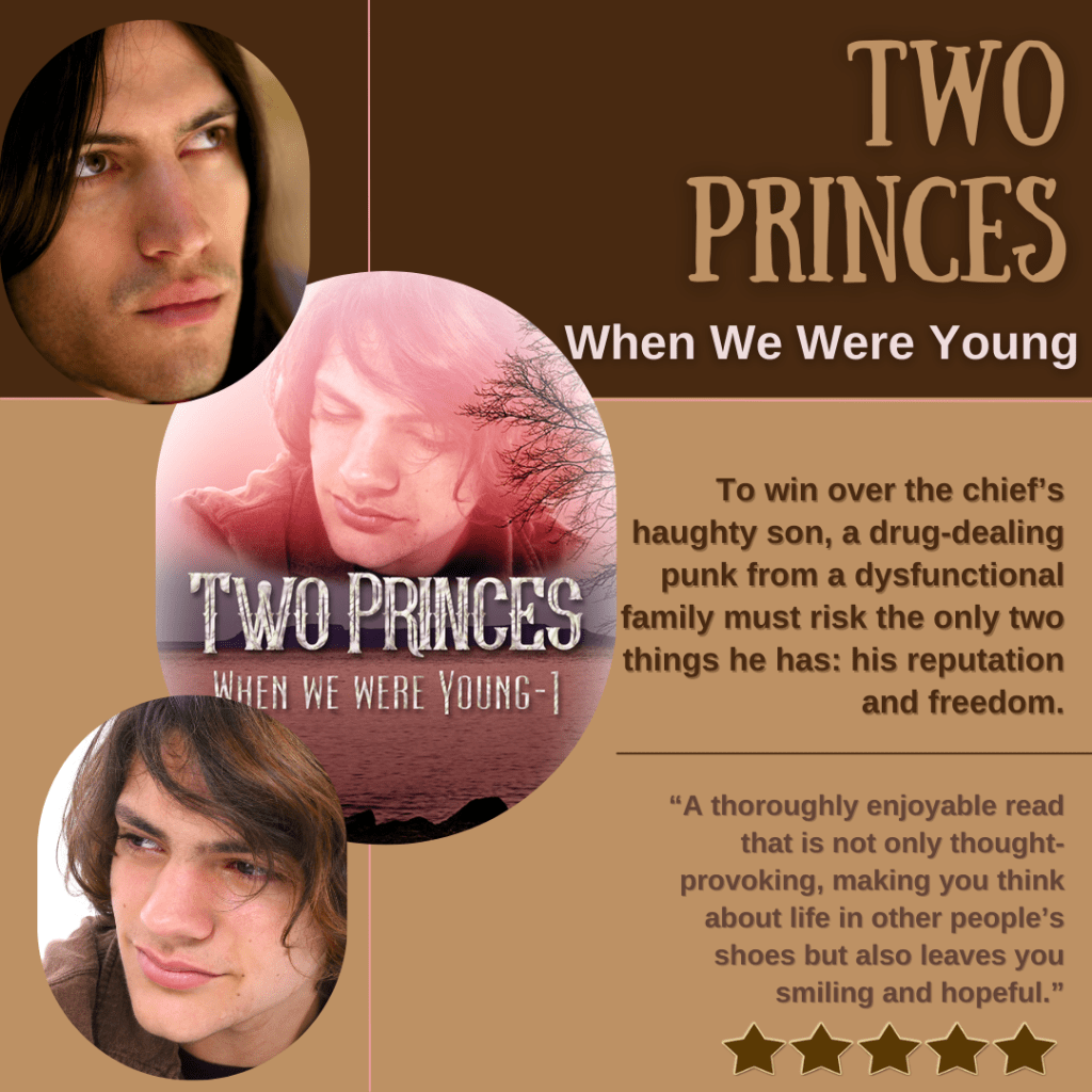 For this edition of First Kiss Friday, I am sharing the true first kiss between Billy Redsky and René Oshawee from Two Princes, book one in the When We Were Young series, a young adult, m/m contemporary romance.