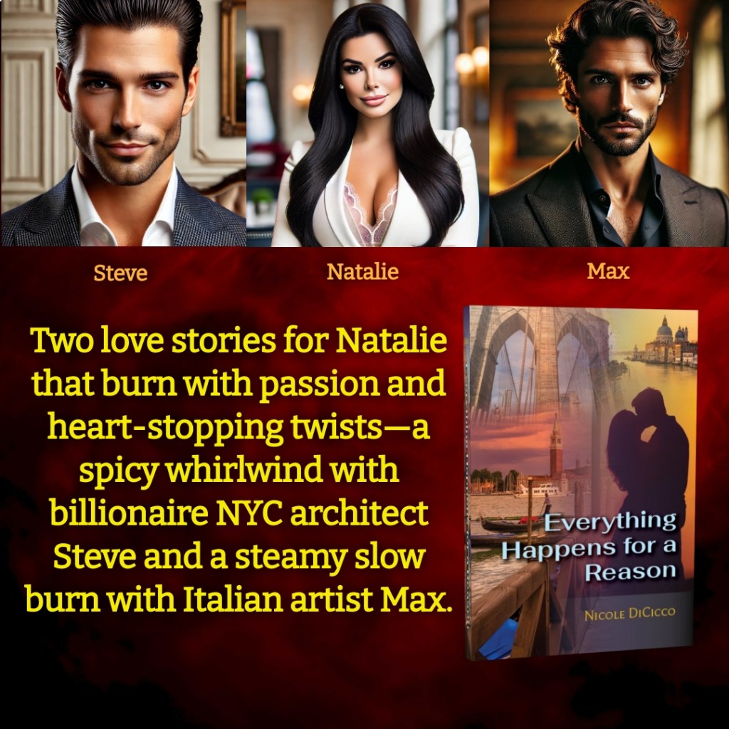 Today, author Nicole DiCicco is guesting. She’s sharing her upcoming releases. Check out her latest release Everything Happens for a Reason, a steamy contemporary romance. Enter the Rafflecopter giveaway.