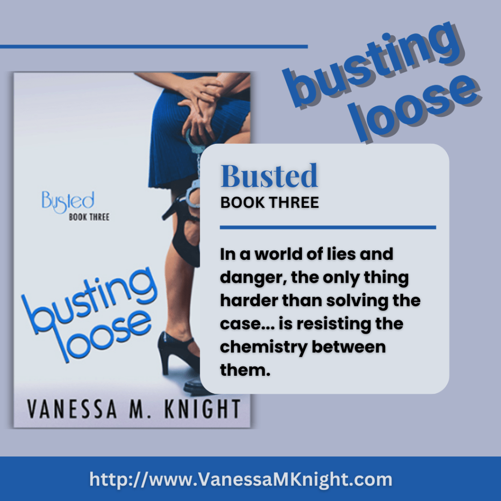 Today, I’m hosting author Vanessa M. Knight’s latest release Busting Loose, book three in the Busted series, a romantic suspense. Be sure to read my review. And don’t forget to enter the Rafflecopter giveaway.