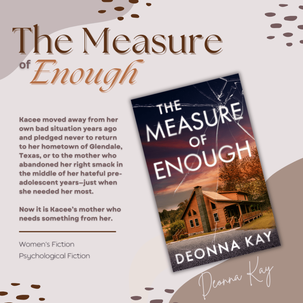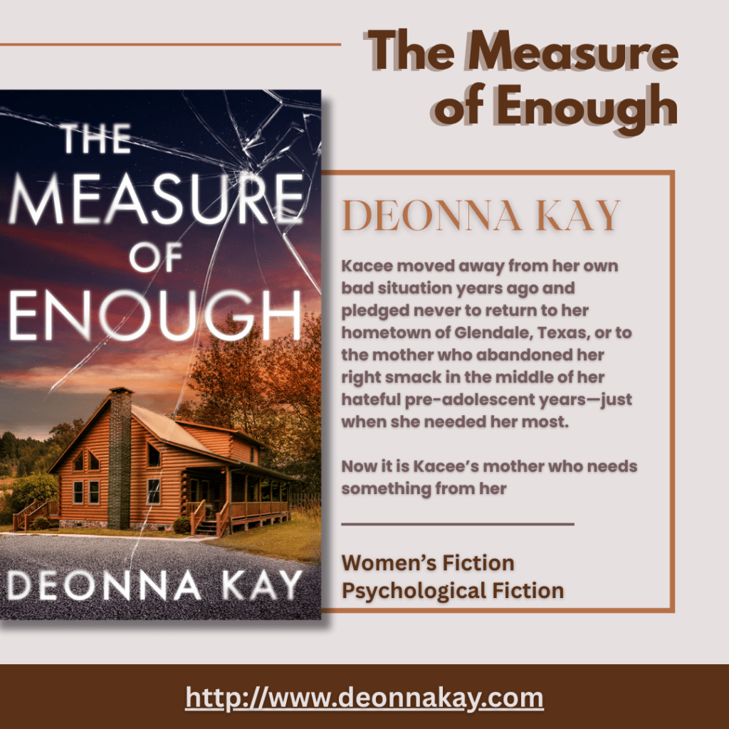 Today, I’m hosting author Deonna Kay’s latest release, The Measure of Enough, a psychological women’s fiction title. Be sure to read my review. And don’t forget to enter the Rafflecopter giveaway.
