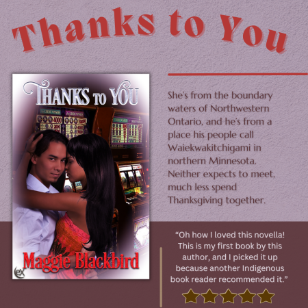 While finishing up his shift at the Big Bear Casino, widower Tripp Beargrease isn’t looking forward to going home to celebrate Thanksgiving alone…again. But when he encounters a stunning Anishinaabe-kwe with legs to her neck, a tiny waist, and a pink, wet tongue licking an ice cream cone standing helpless at her dead vehicle, he’s more than willing to paddle his canoe to her rescue like a true warrior should.