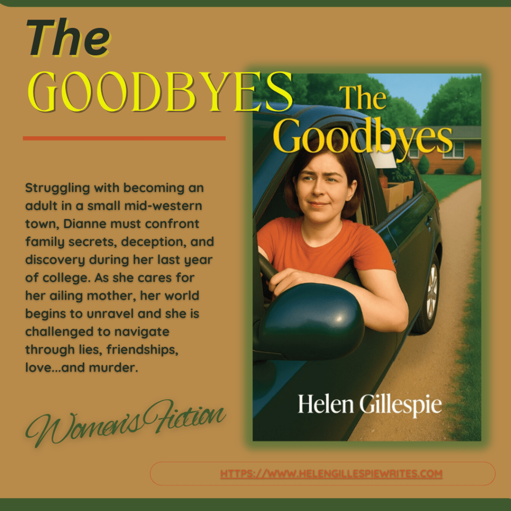 Today, author Helen Gillespie is guesting. She’s talking about her latest release, The Goodbyes, a women’s fiction title. Don’t forget to enter the Rafflecopter giveaway.
