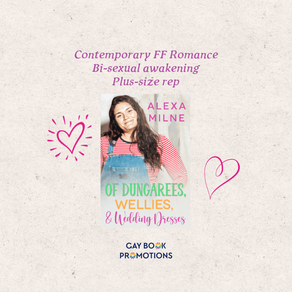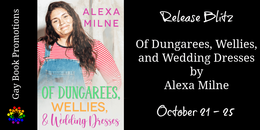 Today, I’m hosting author Alexa Milne’s latest release, Of Dungarees, Wellies, and Wedding Dresses, a f/f contemporary romance.