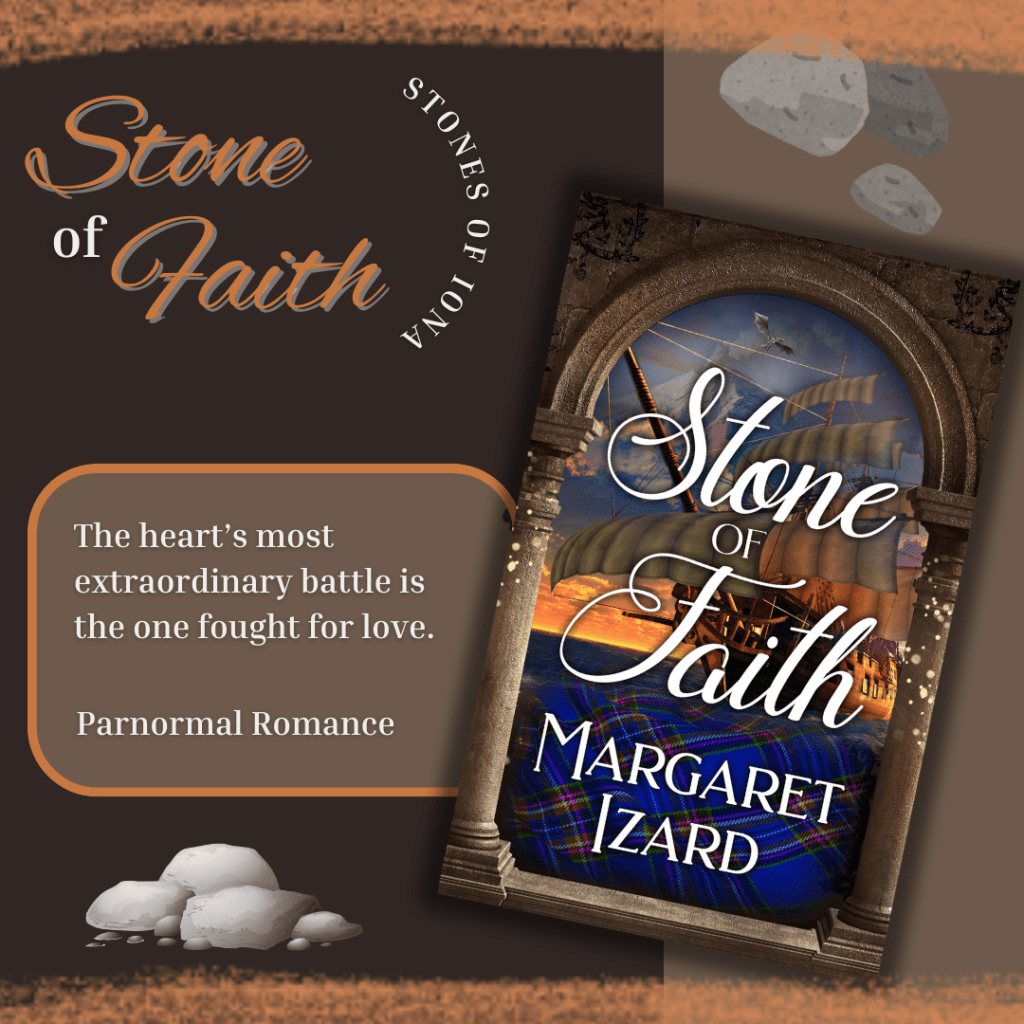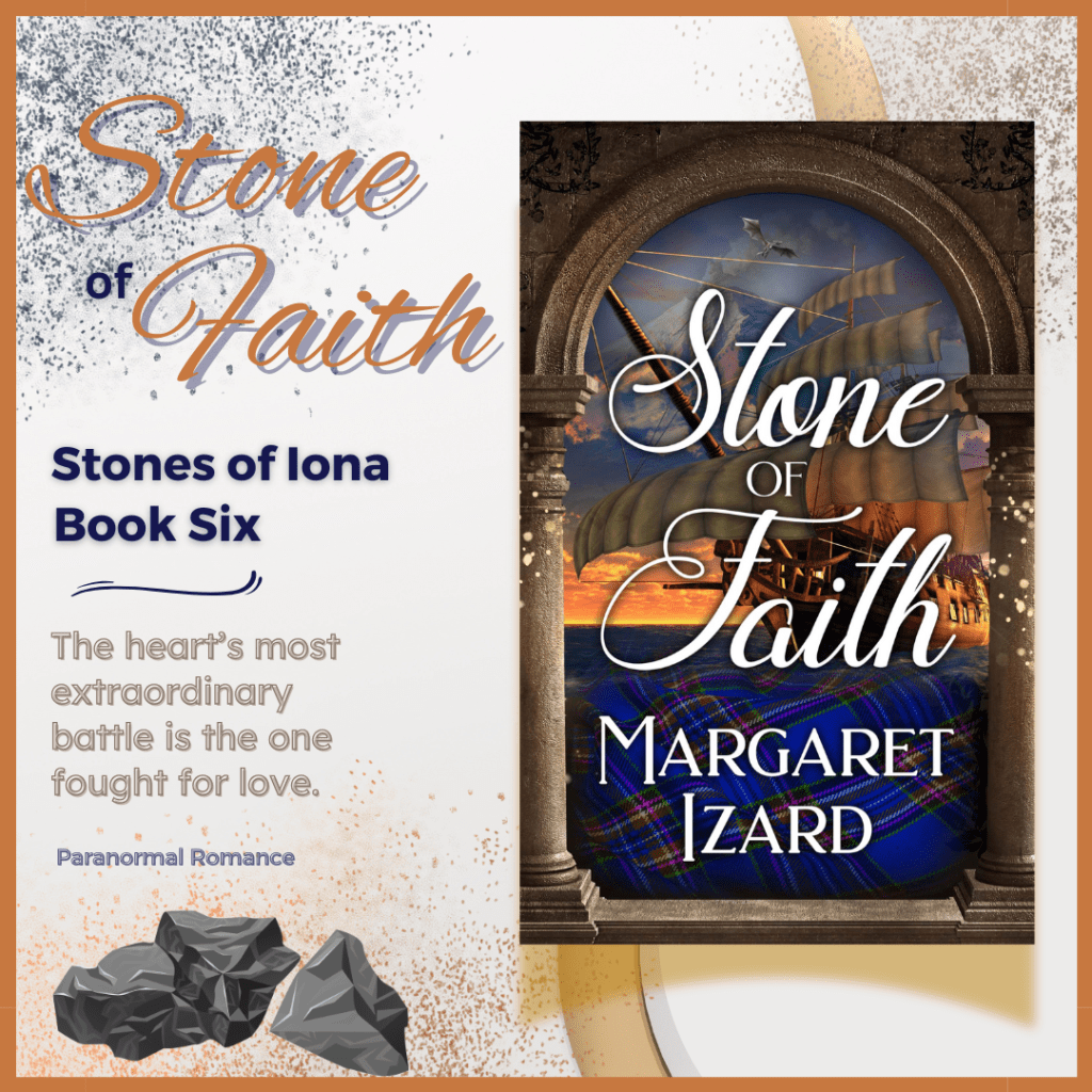Today, multi-award-winning author Margaret Izard is guesting. She’s talking about her latest release, Stone of Faith, book six in the Stones of Iona series, a paranormal romance. Don’t forget to enter the King Sumo giveaway.