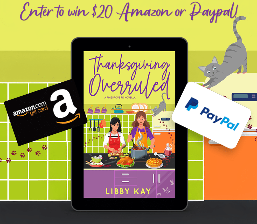 Today, I’m hosting author Libby Kay’s latest release, Thanksgiving Overruled, book three in the Pinegrove FD series, a contemporary, small-town romance. Be sure to read my review. And don’t forget to enter the giveaway.