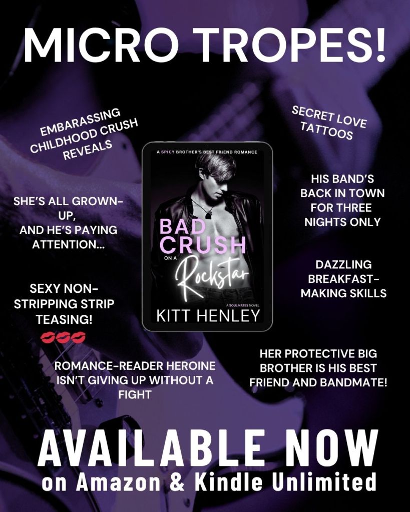 Today, I’m hosting author Kitt Henley’s latest release, Bad Crush on a Rockstar, book three in the Soulmates series, a contemporary romance. Don’t forget to enter the giveaway.