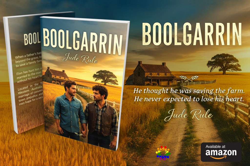 Today, I’m hosting and reviewing author Jude Rule’s latest release, Boolgarrin, a small-town, m/m contemporary romance.