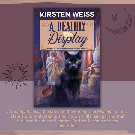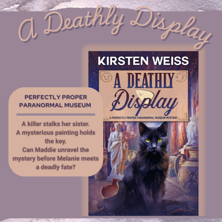 Today, author Kirsten Weiss is guesting. She’s talking about her latest release, A Deathly Display, book eleven in the Perfectly Proper Paranormal Museum series, a cozy mystery. Don’t forget to enter the King Sumo giveaway.