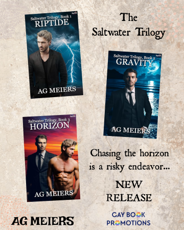 Today, I’m hosting author AG Meiers’ latest series release, the Saltwater Trilogy, a m/m romantic suspense. Be sure to read my review of Riptide, the first book in the series.