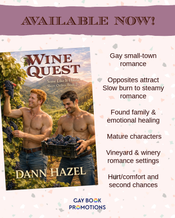 Today, I’m hosting author Dann Hazel’s latest release, Wine Quest, part of the Short Orders Gay Romance series, a m/m contemporary romance.